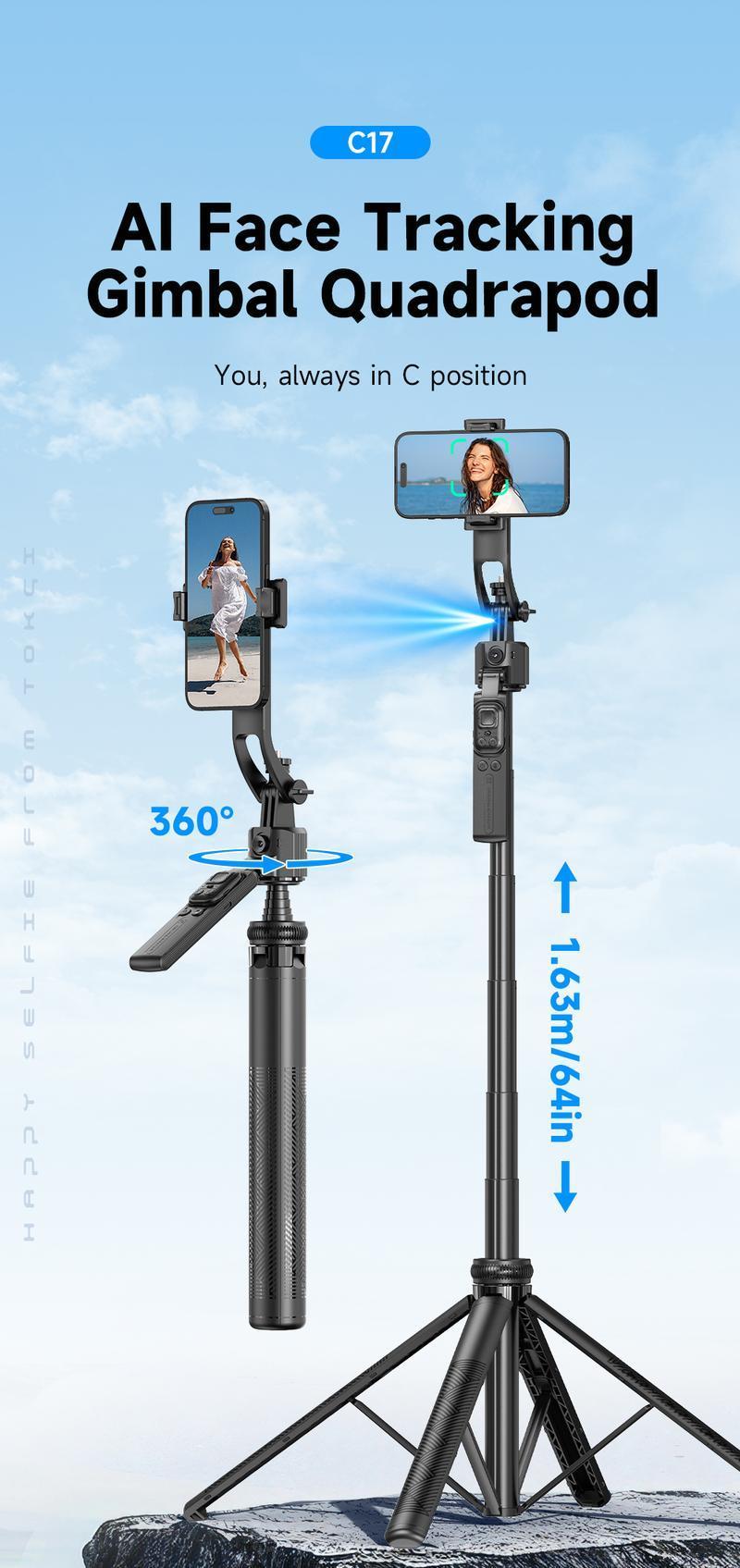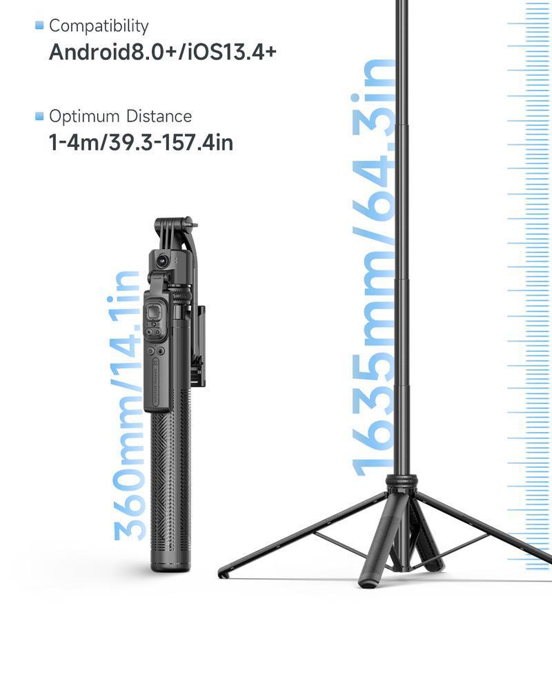 64"Auto Face Tracking Phone Tripod for Iphone/Android, 360° Rotation Selfiestick Tripod with Bluetooth Remote Control, Panoramic Tracking Suitable for Live Streaming/Videos Recording Scalable Selfie Stick