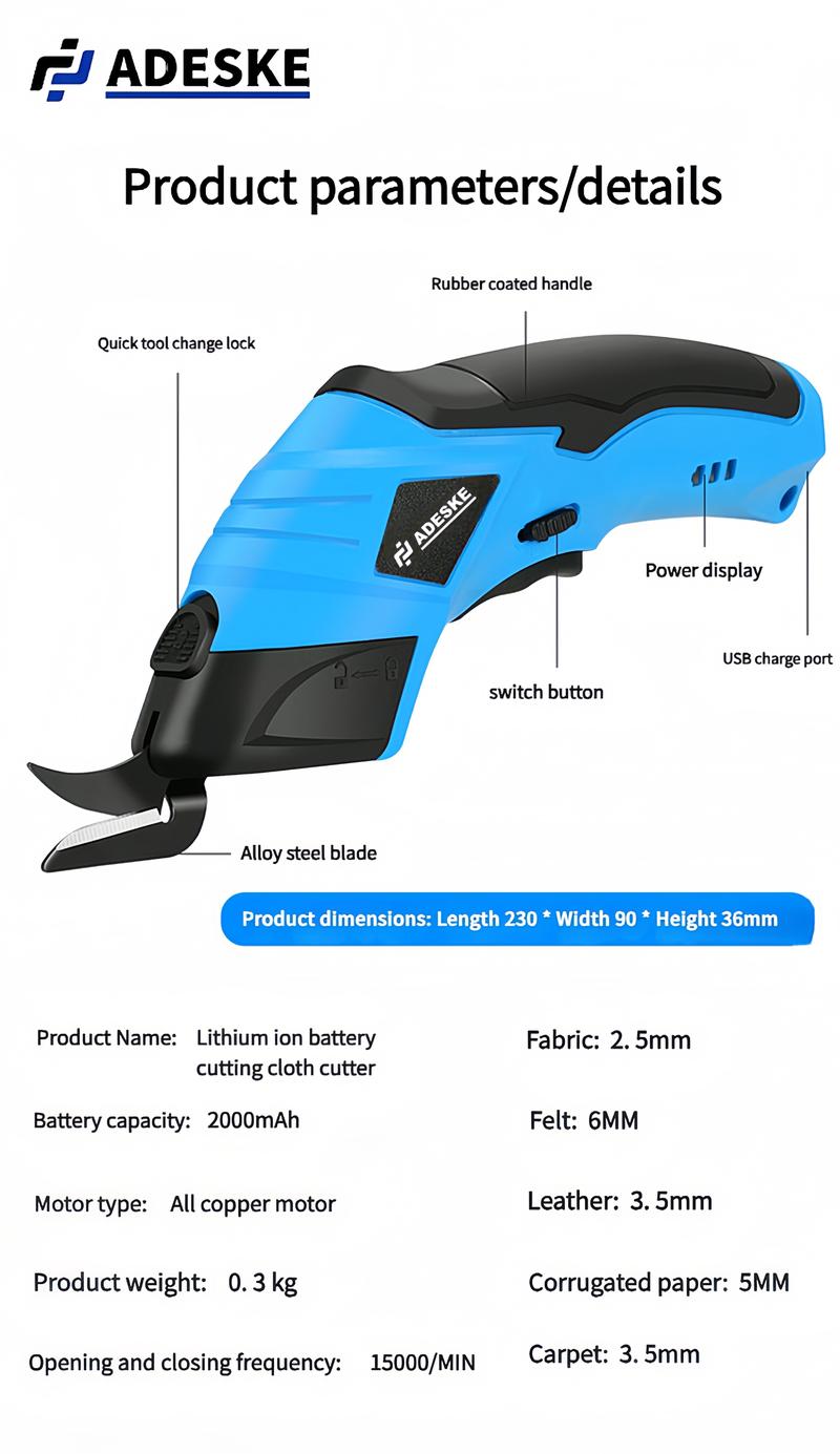 【Ultra-Lightweight and Ergonomic】Weighing only 0.3KG, these cordless electric scissors are perfect for DIY enthusiasts, craftsmen, and professionals working on cardboard, carpet, or sewing projects. The non-slip ergonomic handle ensures long-term comfortable use. ·