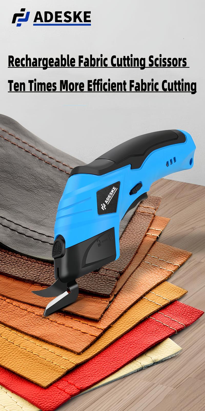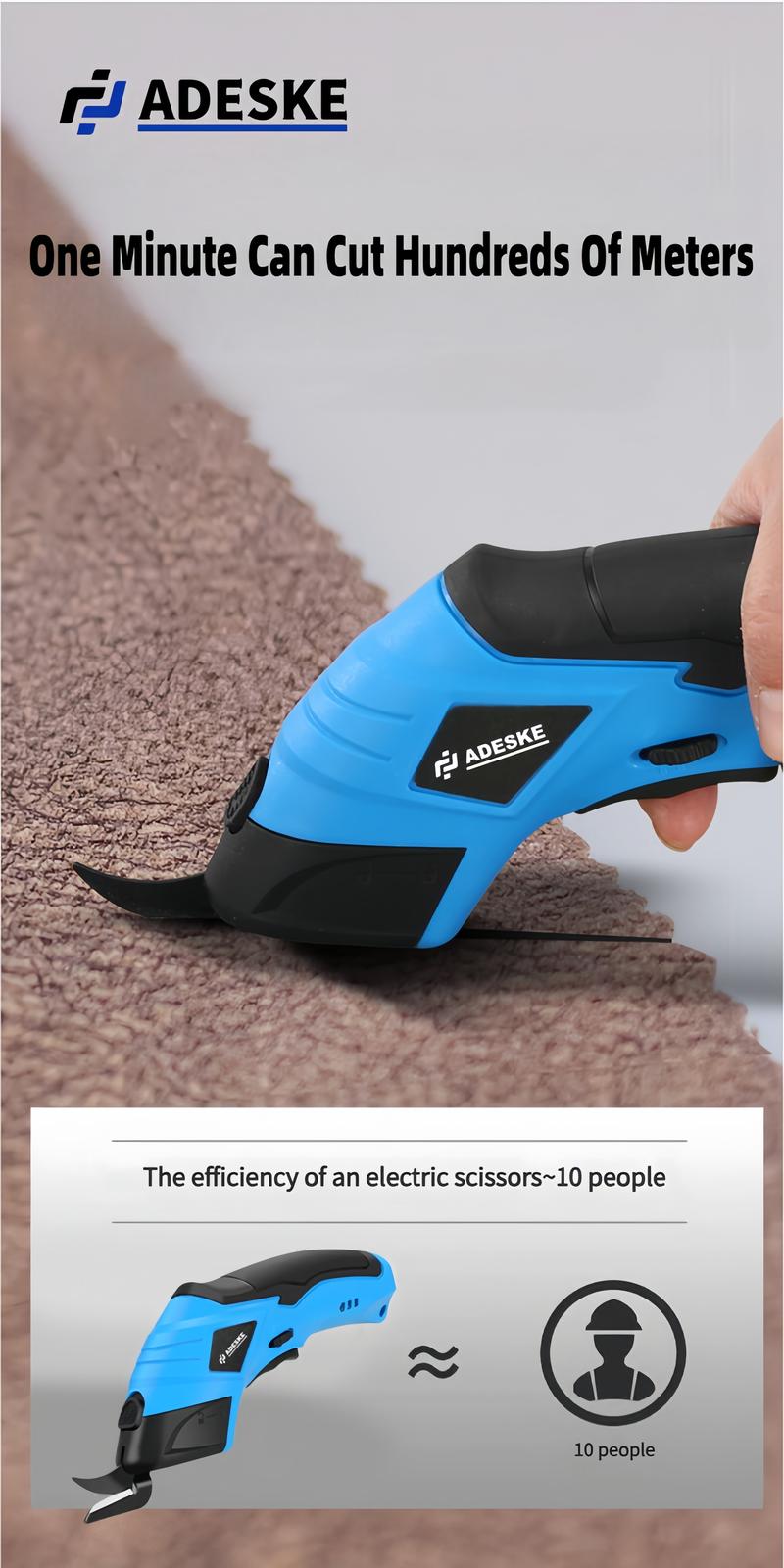 ADESKE Cordless Electric Scissors, Rechargeable Cardboard Cutter with Safety Lock and Rubber Handle, Suitable for Box Carpet Plastic Fabric, with Plastic Box Exquisite Packaging